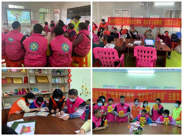 学法守法懂维权。工作人员与残疾朋友一起观看《民法典》微视频,通过一个个家庭纠纷、人身保护、财产争议、尊严维权等现实案件,加深了服务团队和残疾人朋友的岗位职责、法律认知和维权意识。临摹绘画感党恩。曾多次获奖的肢体残疾人杨月娴老师现场示范领画,并与康园学员一起用心、用情描绘出一幅幅色彩夺目的天安门、五星红旗画圈。红歌一曲表决心。全体学员认真浏览党史漫画后,在志愿者的组织下举起五星红旗,合唱了《没有共产党就没有新中国》。趣味运动展身姿。分组比赛现场,