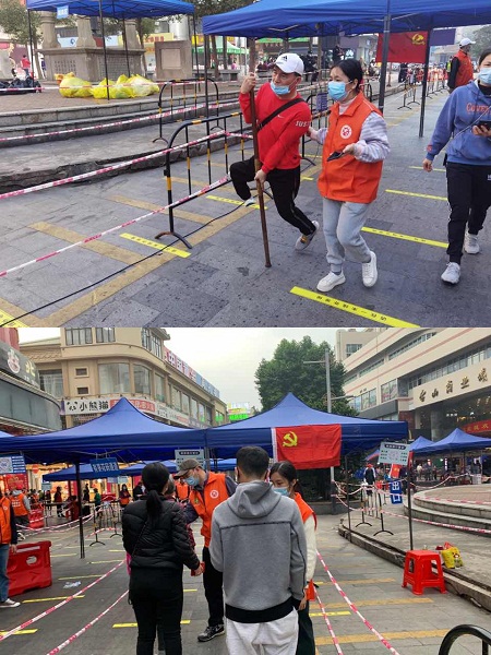 在商业城检测点,前来核酸检测的群众较多,志愿者们勇于担当,迅速到岗,服从指挥,在核酸检测点有序地开展健康码核验、分流引导、信息登记、防疫宣传等工作,核酸检测点工作有序高效开展。对于前来检测的残疾人,开通“绿色通道”,同时志愿者全程协助完成检测服务,温情暖心的服务,让现场的群众纷纷点赞。