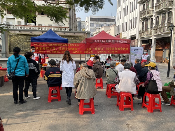 活动现场,邀请台山惠耳听力服务中心设立义诊咨询服务台,为现场群众免费提供外耳道检查、听力检测、耳聋耳鸣预防及听力康复咨询、助听器清洗保养与调试便民服务台;市残联、市武装部、南塘社区组织工作人员和助残志愿者向来往群众宣传爱耳护耳健康知识,分发《耳聋康复知识问答》宣传手册等,重点讲解儿童听力致残因素防控、老年性耳聋预防等相关知识,共发放宣传资料、人工耳蜗电池等宣传纪念品100余份。