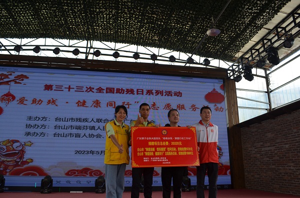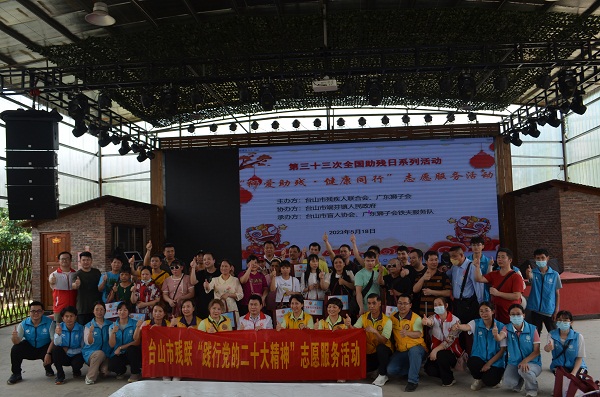 为推动党的二十大精神在志愿服务中落地落实,在第三十三次全国助残日来临之际,为丰富视障人士的精神文化生活,台山市残联联合广东狮子会铁夫服务队开展“关爱同行 有爱无碍”志愿服务活动,活动包括“狮爱助残,健康同行”“追寻红色足迹,涉取奋进力量”等系列志愿服务活动。市残联、市端芬镇府、市盲人协会共50名残疾人及志愿者参加活动。