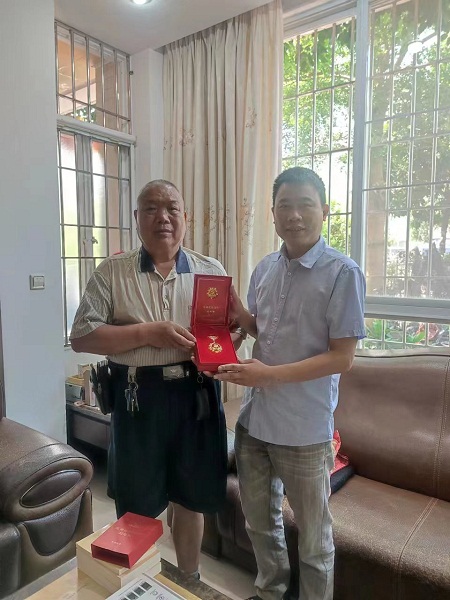 29日上午,市残联党组成员、副理事长冯占衡一行上门为老党员何镜泉颁发“光荣在党50年”纪念章,感谢老党员为党的事业和发展作出的贡献,希望老党员们保重身体,继续关心、支持残联工作,多提宝贵意见和建议,同时为老党员送去了《习近平著作选读》《习近平新时代中国特色社会主义思想专题摘编》等“精神食粮”。何镜泉同志表示“光荣在党50年”纪念章凝聚着党和国家对他们的关怀和温暖,将始终坚守初心,永远听党话、跟党走,一如既往永葆共产党员的政治本色。
