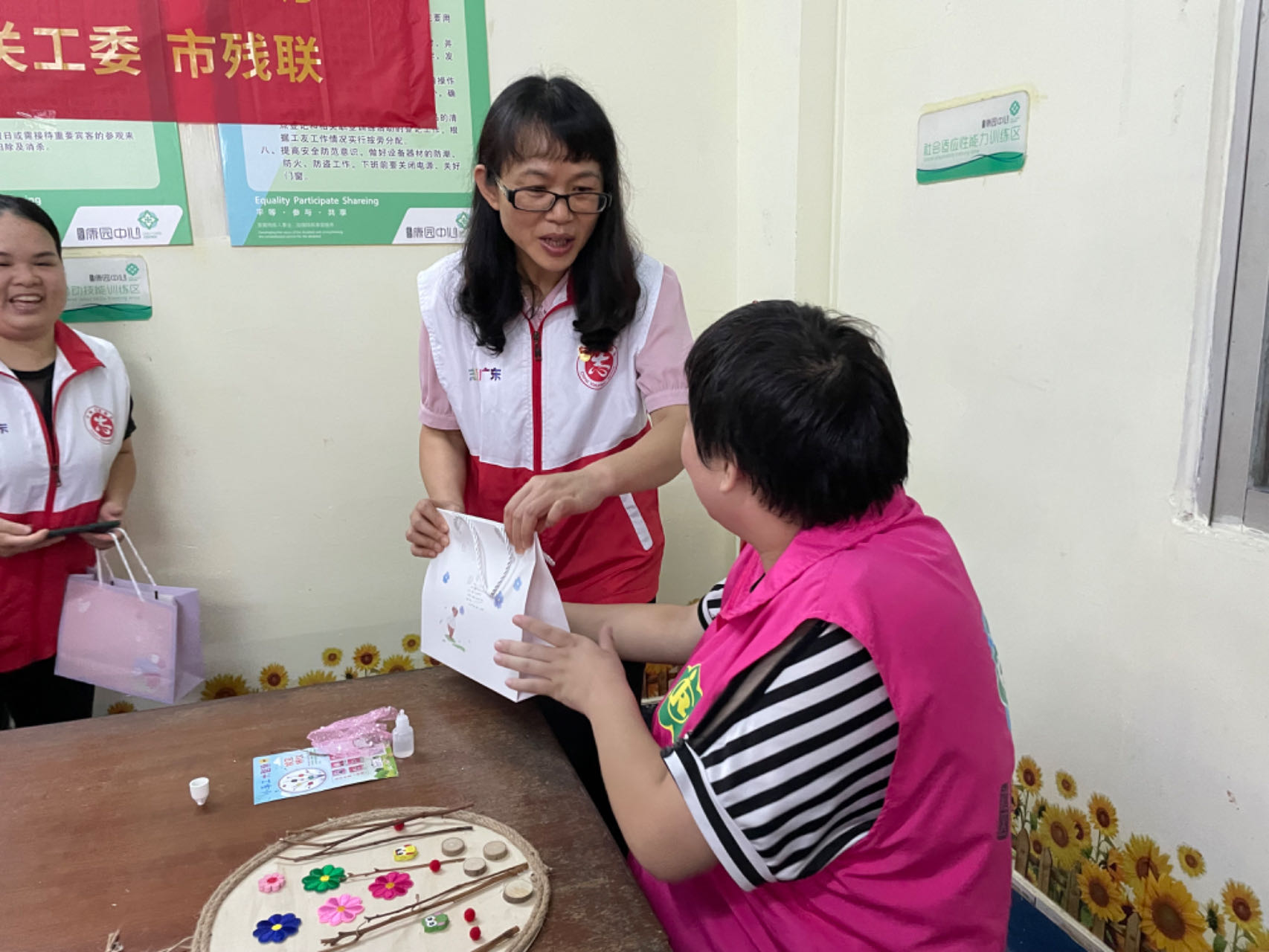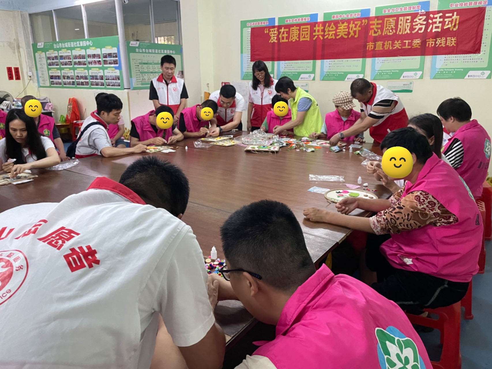 在第三十四个“全国助残日”期间,为进一步营造扶残助残的社会风尚,5月25日,市直机关工委、市残联在台城社区康园中心开展“爱在康园 共绘美好”志愿服务,组织党员志愿者走进康园,与康园学员一起制作手工贴画。