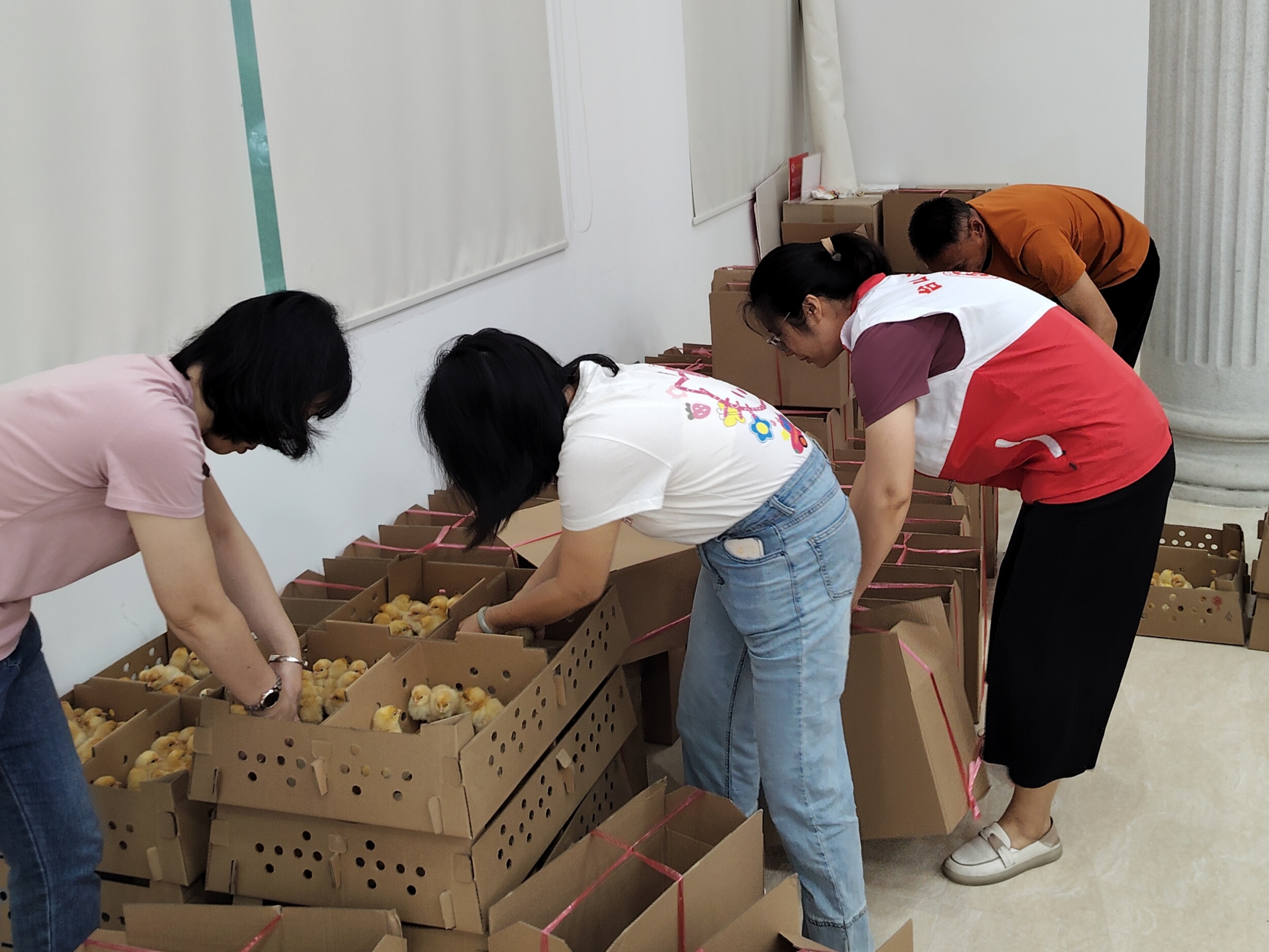 为帮助学员快速开展养殖实践,培训结束后,现场向每位学员发放22只经过严格检疫的优质胡须鸡苗和专用饲料等生产物资,为学员提供实质性的启动支持。