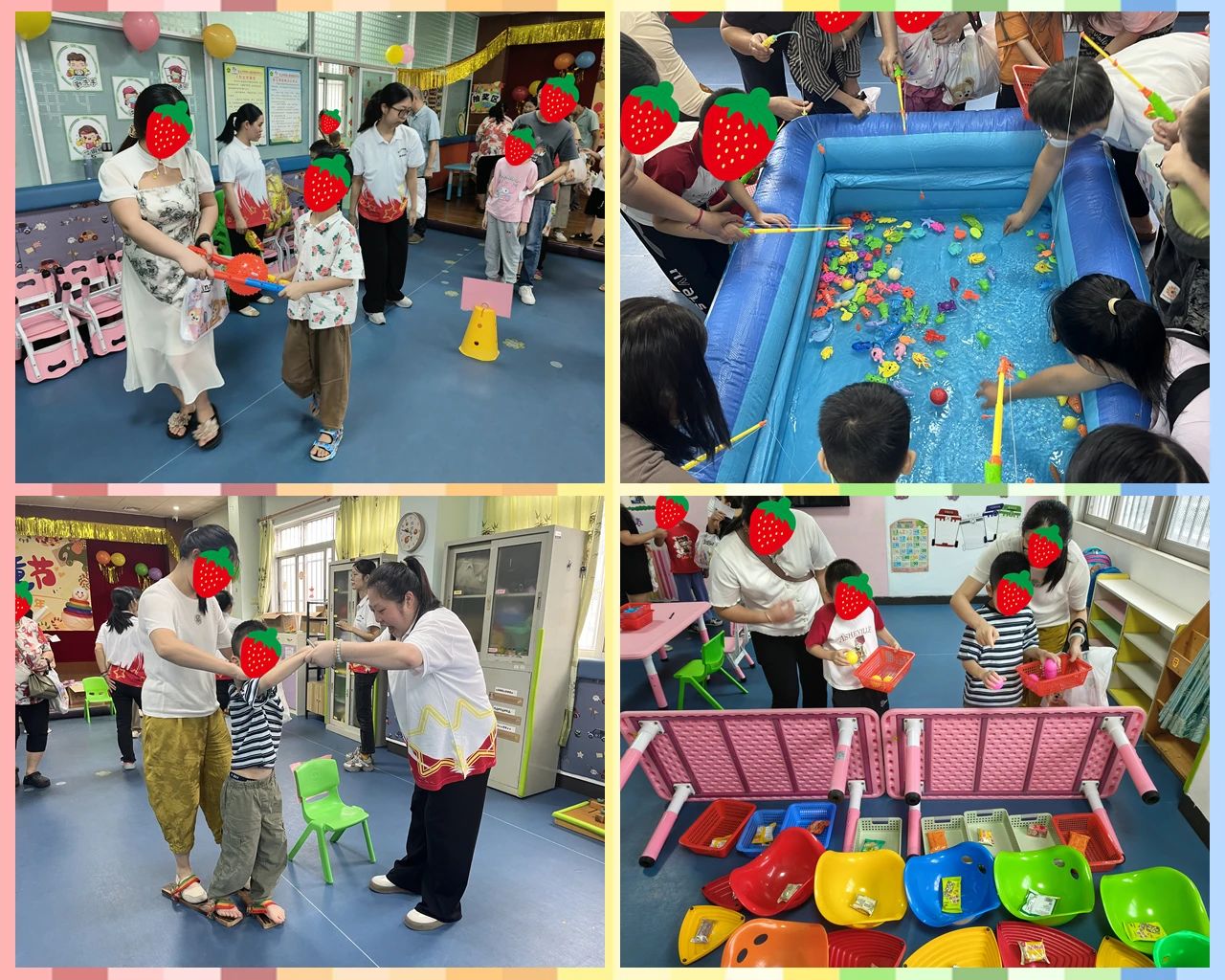 此次活动精心设置了“扔球寻宝”“亲子运球”“同心共进”“钓鱼高手”“开心抽奖” 等 5 个互动游戏。在老师、家长和志愿者的悉心陪伴下,小朋友们全神贯注地参与游戏,每当成功完成任务,便能兴奋地领取小奖品,活动现场,欢笑声、加油声此起彼伏。