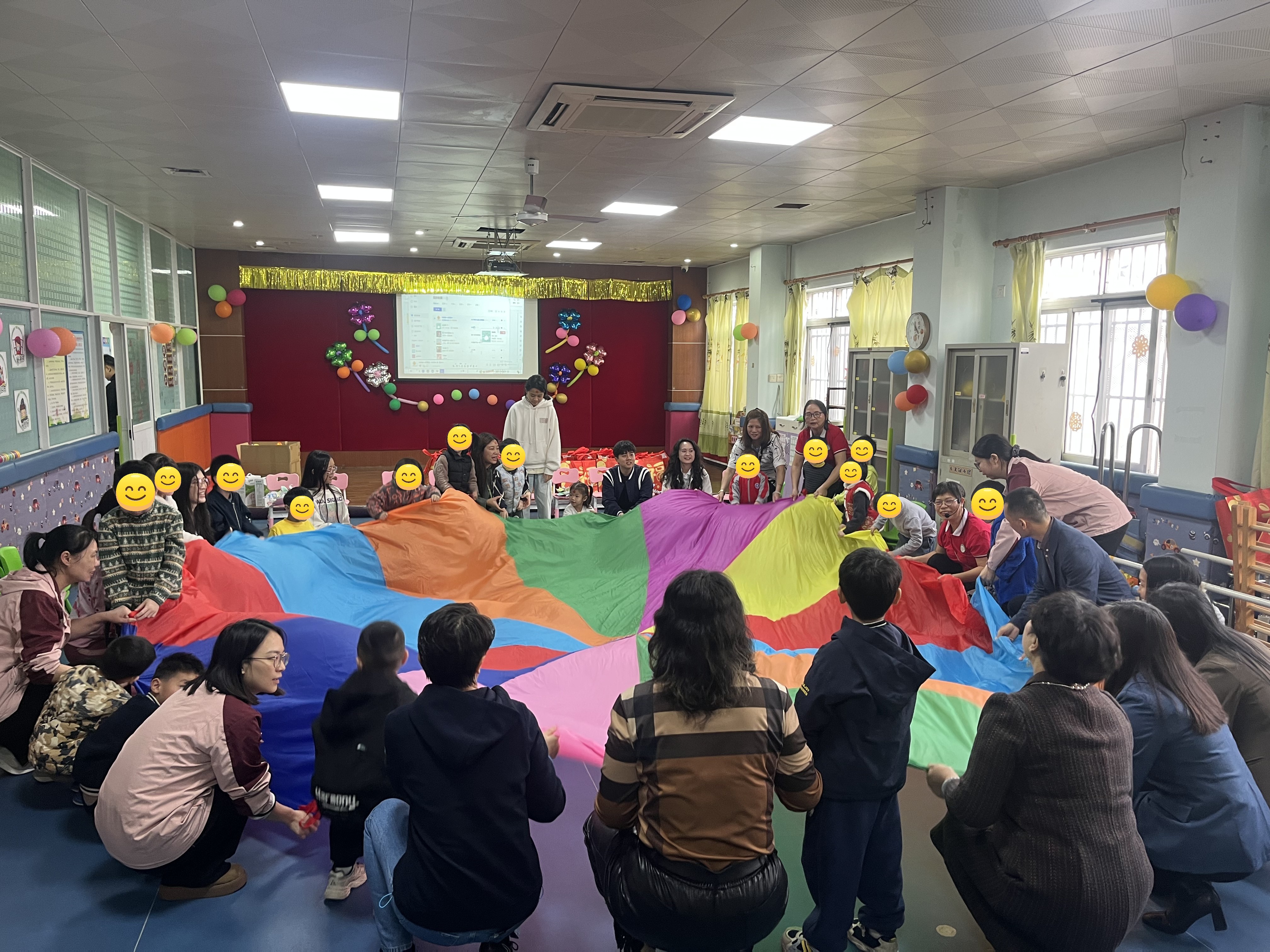 精彩的互动环节接踵而至!孩子们带来了精心编排的节目,虽然部分孩子发音不够流畅、动作略显笨拙,但他们用最真挚的情感演绎着歌曲与舞蹈,展现出对生活的热爱,台下热心人士纷纷鼓掌喝彩,这就是最美好的双向奔赴!“杯子接力赛”上,孩子们与侨胞们默契配合、互帮互助,“玩转彩虹伞”中,彩色的伞面下欢声笑语不断,孩子们追逐嬉戏,侨胞们积极参与,现场氛围一次次推向高潮!起初有些拘谨的孩子们,在游戏中逐渐敞开心扉,主动交流、积极协作,侨胞们也完全沉浸在这份纯粹的欢乐中,用十足的耐心与满满的包容守护着每一份童真,课室每个角落都洋溢着笑声与温情!